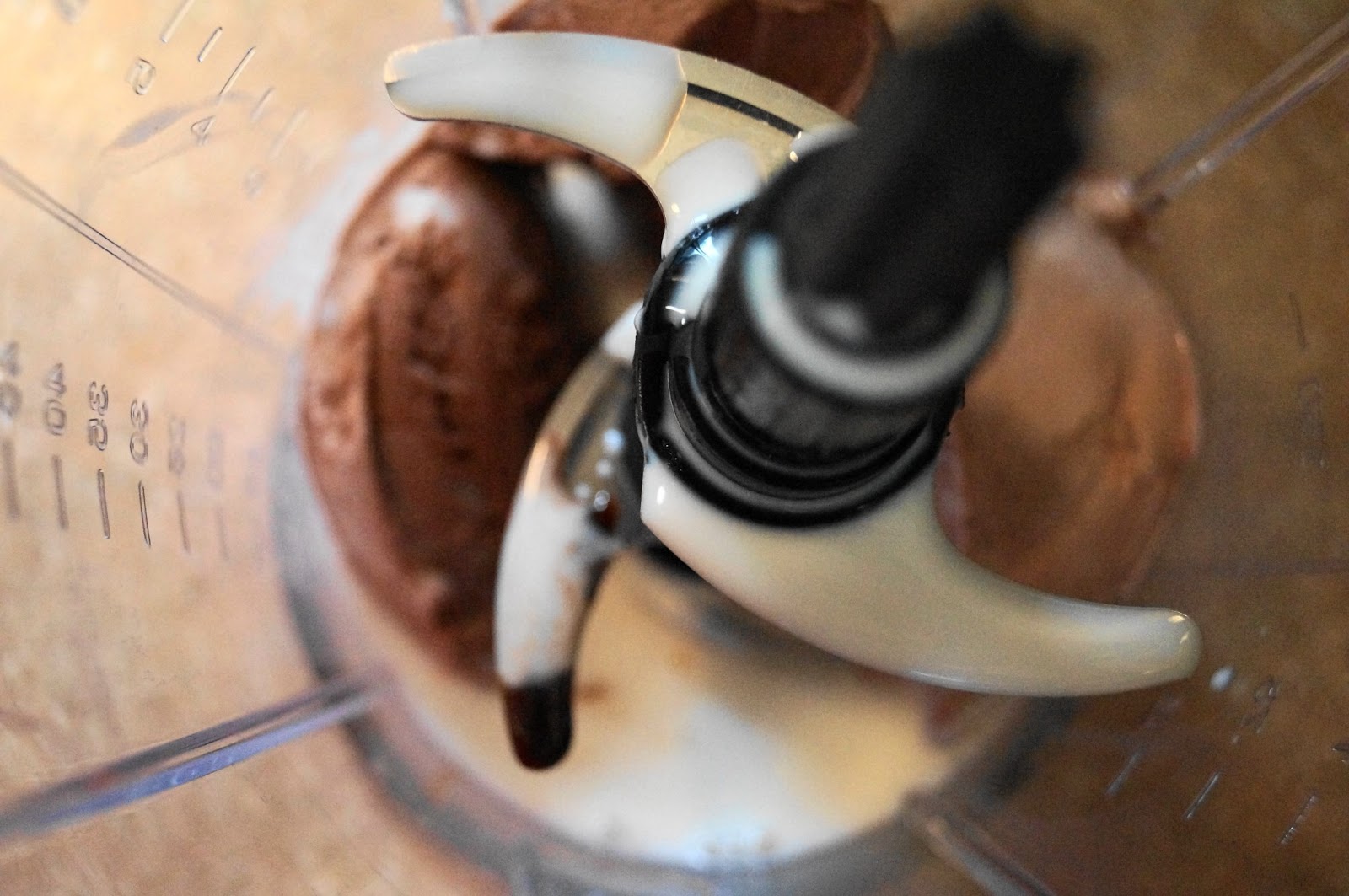 Add the ice cream and chocolate syrup into your blender or Ninja. Slowly add the milk a little at a time. A little milk will make a thick shake, add more to thin it out.